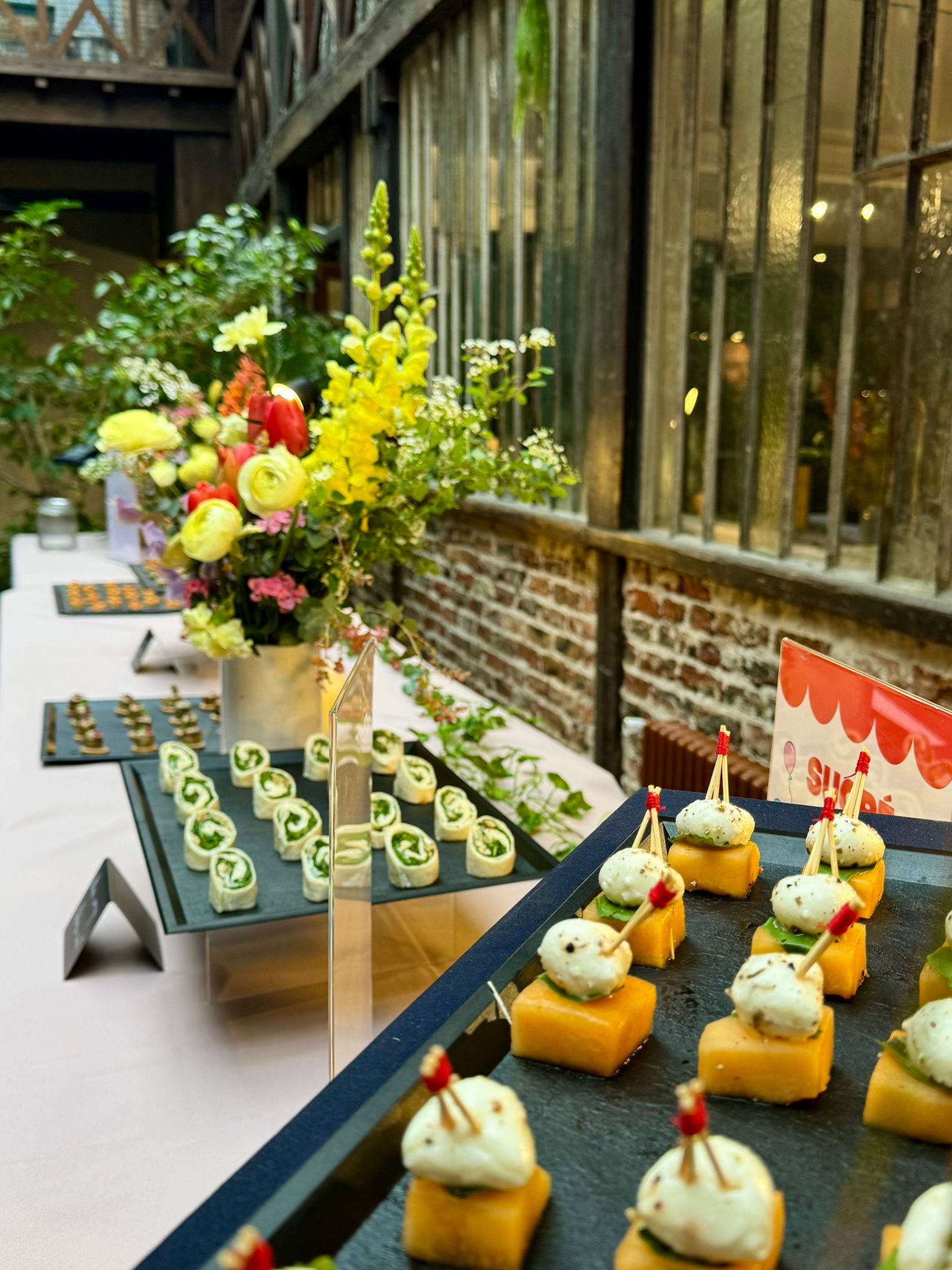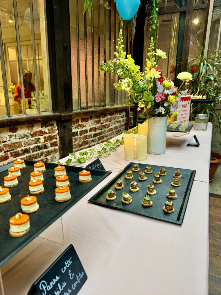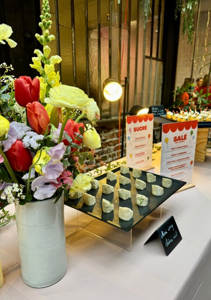 Pour célébrer une décennie aussi colorée que audacieuse, Papille Traiteur a imaginé une sélection en totale résonance avec l’univers de Coucou Suzette. Entre les shows de Drag Queens, les chorégraphies de Boys Band et la piste de danse enflammée, le cocktail dînatoire a tenu son rôle jusqu’au bout : nourrir la fête sans jamais l’interrompre. En effet, des pièces salées créatives et végétales aux douceurs sucrées pétillantes, chaque bouchée a été pensée pour s’accorder avec l’énergie électrisante de la soirée. Ainsi, gourmandise, générosité et caractère étaient au rendez-vous comme la marque qu’on célébrait ce soir-là.
